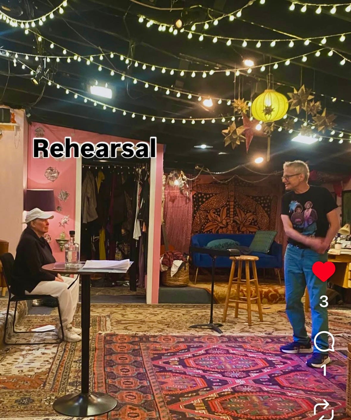 Which makes the rehearsal of this current play all the more excruciating because in the second act I’m enacting a version of myself from twenty years ago, with all my narcissistic, self-aggrandizing belligerence on full display.